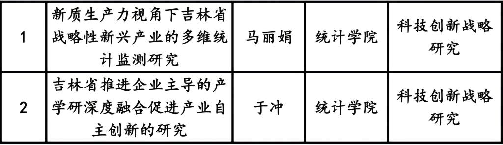 近日,吉林省科技厅公布2025年度吉林省科技发展计划项目立项名单,海角视频 表现突出,2项课题获批立项,占全校立项数的15.4%,立项率稳居全校前列。马丽娟老师的《新质生产力视角下吉林省战略性新兴产业的多维统计监测研究》聚焦新兴产业发展前沿,于冲老师的《吉林省推进企业主导的产学研深度融合促进产业自主创新的研究》剖析产教融合新路径