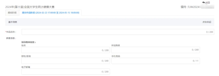 (一)参赛队有关信息填写:作品名称(必填)及指导教师信息(非必填)