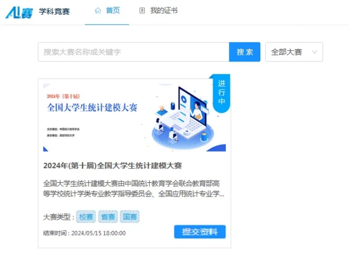 论文撰写完成后,再次登录系统,点击“提交资料”进入上传参赛材料页面,如下图所示: