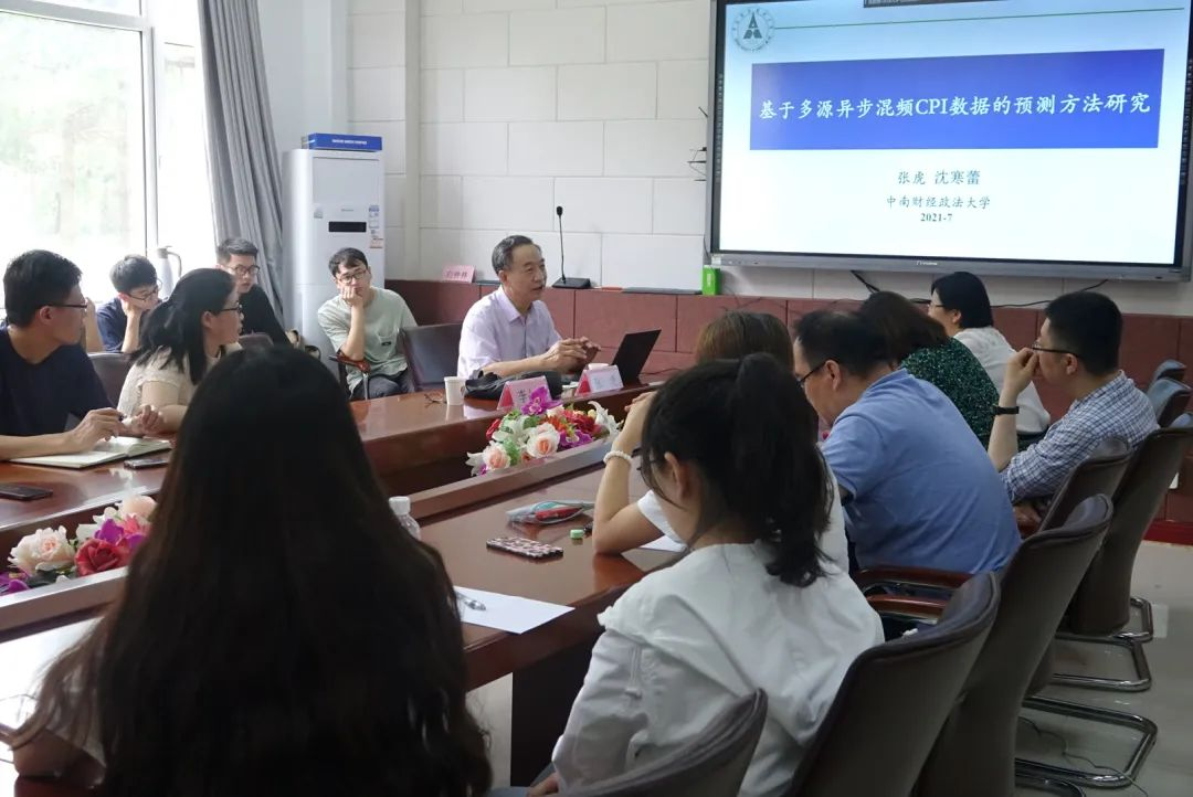 2021年7月9日上午,应海角视频 、统计咨询与大数据研究重点实验室、经济运行研究中心邀请,中南财经政法大学统计与数学学院院长张虎教授作了主题为“基于多元异步混频CPI数据的预测方法研究”的学术报告。海角视频 教师和研究生同学参加了此次报告会,会议由海角视频 院长李国荣教授主持。