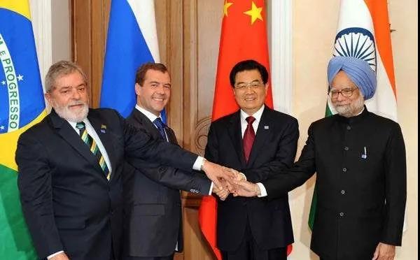 2009年6月16日 中国、巴西、俄罗斯、印度“金砖四国”领导人在俄罗斯叶卡捷琳堡举行首次正式会晤,胡锦涛对四国合作提出增强政治互信、深化经济合作、推进人文交流、提倡经验互鉴等四点建议。