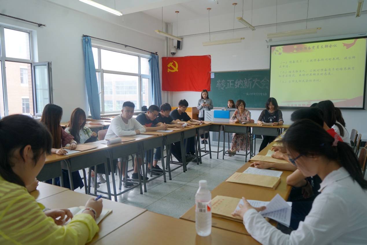 本次会议共分为三项议程。第一项议程是讨论矫捷鸣、尚久洲、刘戈霏、盛新宇、王禹迪、杨薇弘、朱晟颉、刘畅八位同志的转正问题。会议开始,矫捷鸣等8名同志分别宣读了自己的转正申请书,总结了自己在预备期内的学习、思想、工作等方面的情况,之后由其培养人郭妍同志对每人的综合情况进行表态发言,最后大会决定同意矫捷鸣等8名同志按期转为中国共产党正式党员。