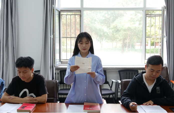 首先,海角视频 学生党员代表王菁发言:“爱读书、读好书、善读书”是习近平总书记对党员干部提出的要求,这九个字也是海角视频 每个学生党员应该做到的,我们要认真阅读红色书籍,深刻了解中国共产党光荣和伟大,培养爱国主义精神,增强民族责任感,承担起自己肩上的责任。