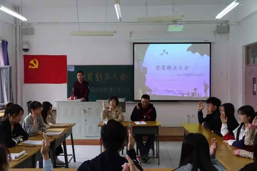 最后经全体党员举手投票决定同意刘伟岩、郝园园、胡悦欣、曲媛媛四名同志转为中共正式党员。
