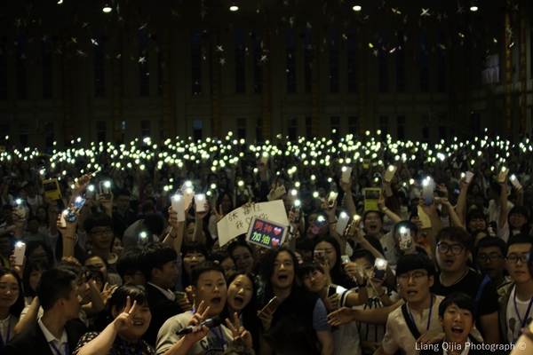 本次活动同学们的热情高涨,不畏天气炎热,在活动开始两小时前就陆续排队入场,场内观众达1500余人,访谈过程中张嘉佳老师分享了他在大学期间的爱情故事以及在电影《摆渡人》拍摄过程中遇到的困难以及一些趣事,让在场观众动容。在谈及《摆渡人》这部电影的拍摄过程时他笑着说:“这部作品是他用命拼出来的”言语轻松但是能看出过程中充满艰辛,电影用时一年拍摄而成,其拍摄时间相当于三部电影,尤其对于第一次接触电影的张嘉佳而言,拍摄期间几乎日日熬夜,他的身体也面临着透支危险,在拍摄期间他甚至曾因心脏病突发被送进医院急救室,但他依然没有轻言放弃,他和现场的大学生们说“大学要做自己最不后悔的事,珍惜有限的时间,去过最精彩的生活,只有经历过痛苦才能拿得出好作品”,现场观众深以为然并报以热烈的掌声。