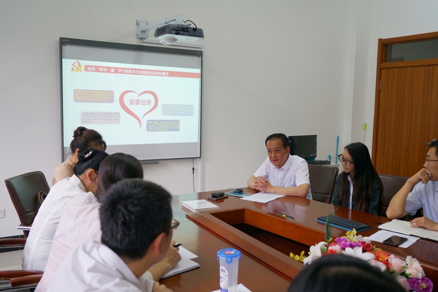 推进“两学一做”学习教育常态化制度化实施方案》的有关内容,部署了学院推进“两学一做”学习教育常态化制度化的工作安排。其次,他就推进“两学一做”学习教育常态化制度化从重大意义、目标要求、学习要求、解决问题、推动落实五个方面进行了详细的解读,并重点强调了学习方面的要求。最后,他要求党员领导干部要以上率下启模范带头作用;党员同志们要时刻进行“党性体检”,为学院的发展建设做贡献;各党支部依托“三会一课”制度认真组织学习,扎实开展工作。