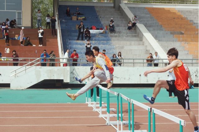 第四十二届校运动会于5月13日拉开了帷幕。此日比赛项目包括男女子110米跨栏、男女子三级跳远以及男女子标枪预决赛。