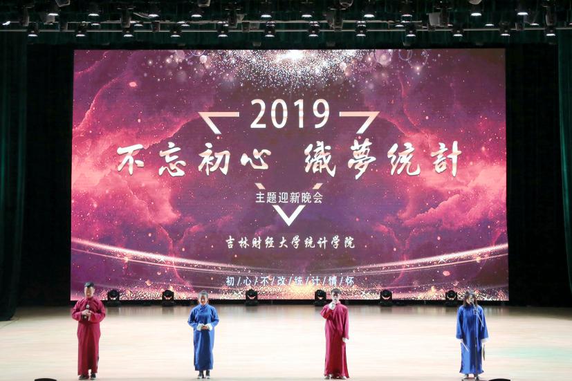 此次迎新晚会高潮迭起,歌舞、小品、朗诵、相声等精彩的节目为观众呈现了丰盛的视听盛宴。晚会共有十八个节目,共分为三个主题分别为“新沐韶华、诗写统计”,“菁华新梦、情暖统计”以及“国岁峥嵘、筑梦统计”。在留声乐队表演的《我们的时光》节目中,此次迎新晚会迎来了第一个浪潮。由李晓新老师带来一首《冷雨夜》,旋律动人,情感真挚。随后,经过初复赛的激烈角逐,共有八名选手闯入海角视频