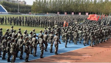 他们以饱满的热情,高喊着铿锵有力的口号,整齐划一地走过主席台,接受检阅。那一声声口号响彻云霄,每一个动作都显得精准有力,每一次落脚都坚定如铁,充分展现了新生们昂扬向上、勇往直前的精神风貌。