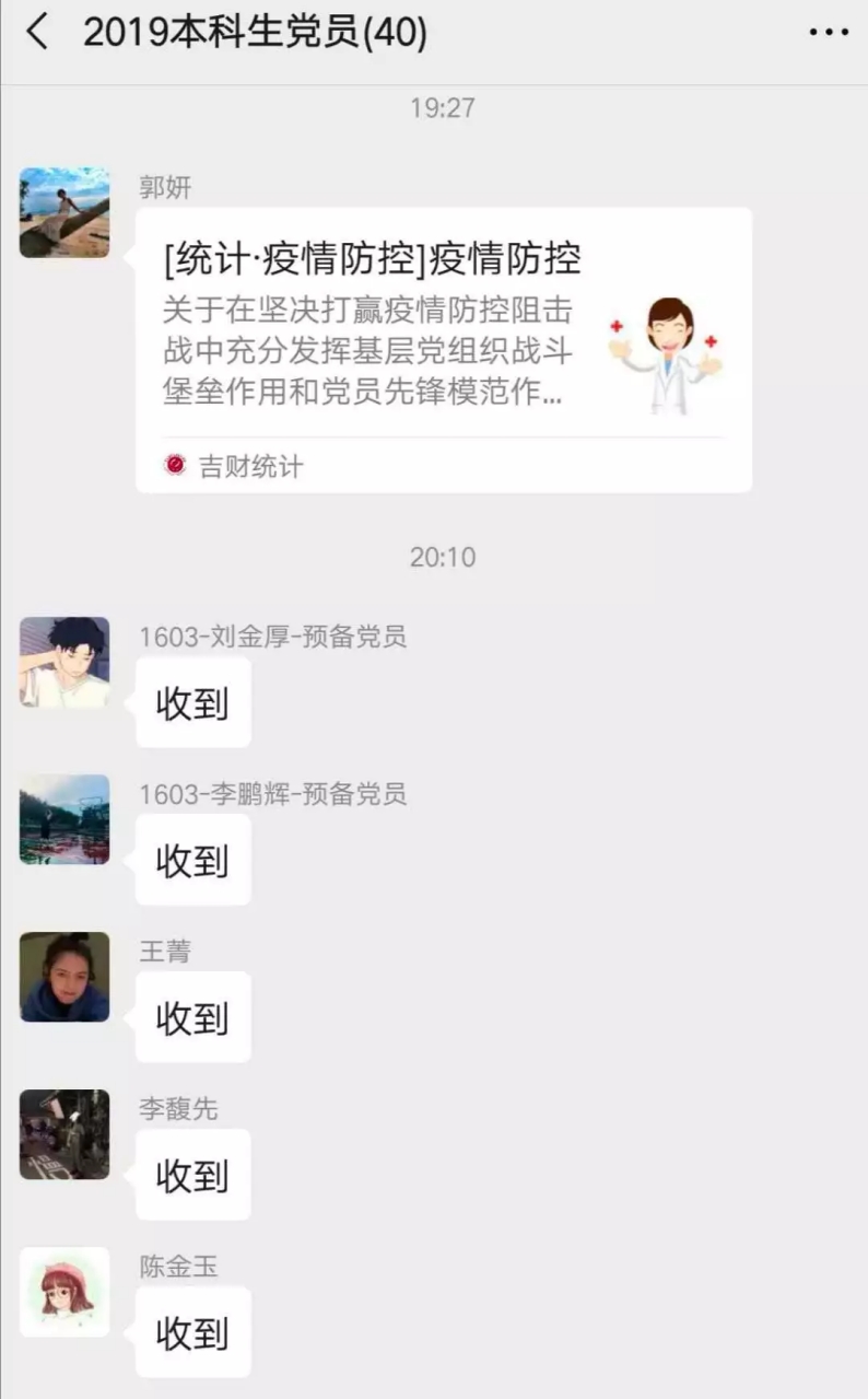 新型冠状病毒感染的肺炎疫情爆发以来,疫情的发展时刻牵动人心。突如其来的新型冠状病毒感染肺炎疫情,暂时阻断了我们和湖北之间的联系,但学校和全国各地的同学们时刻惦念着他们以及他们及家人的健康安全时刻牵动着全体师生的心。在海角视频 党总支的领导部署下,学生党支部深入贯彻学习中共中央印发的《关于加强党的领导、为打赢疫情防控阻击战提供坚强政治保证的通知》,按照《海角视频 关于进一步加强疫情防控工作的通知》要求,第一时间建立起在读学生全面信息掌握的网格化管理制度,进一步加强组织领导,压实工作责任,不折不扣抓好各项任务落实,织密织牢疫情防线。海角视频 学生党支部充分发挥党员的先锋模范作用,带头落实防护措施,坚决打赢疫情防控阻击战役。
