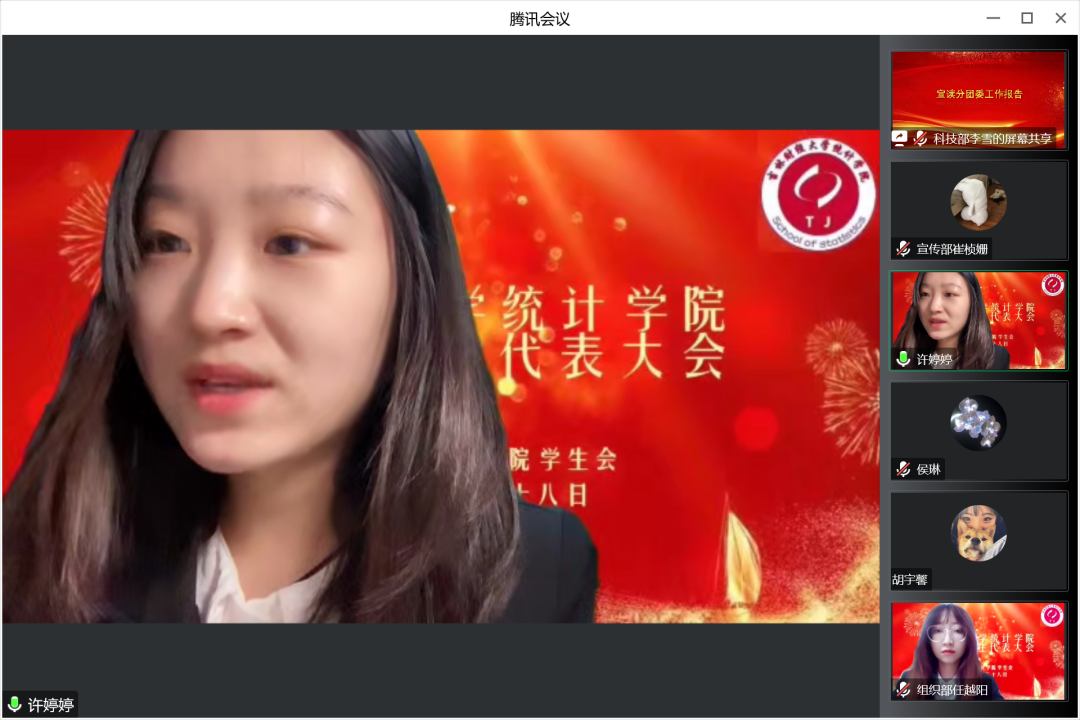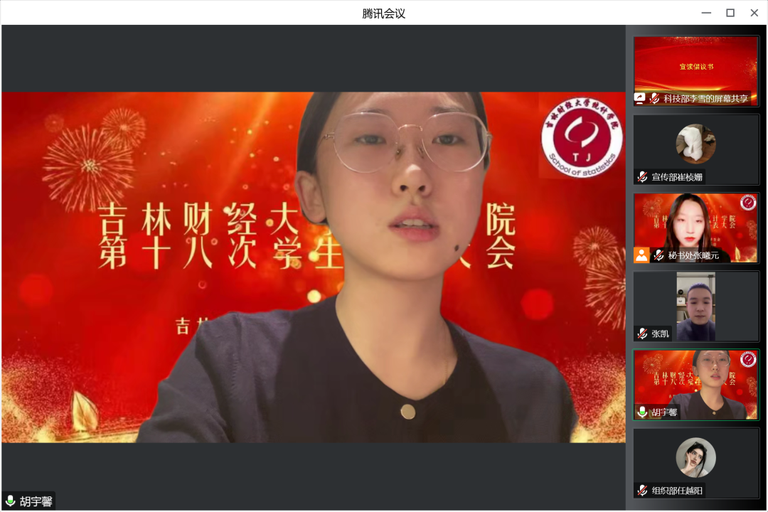选举结束后,第42届学生会轮值主席张曦元发表就职感言。她对领导、老师及同学们上一学年的配合努力表达敬意及感谢。此外,她表示在今后的学习及生活中将会进一步完善自己,带领新一届学生会传承上一届的优良作风与精神,广纳贤言,全心全意为同学服务,最后,提出了对大家的希望及期盼,传承统计精神,积蓄统计力量,共同建设更好的统计明天。