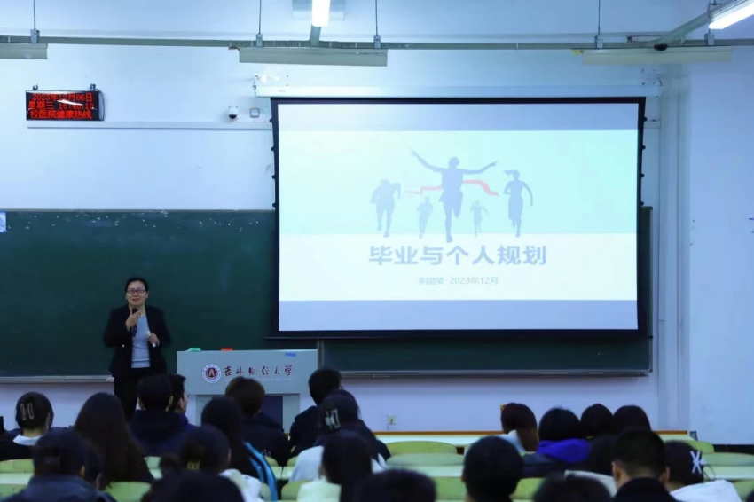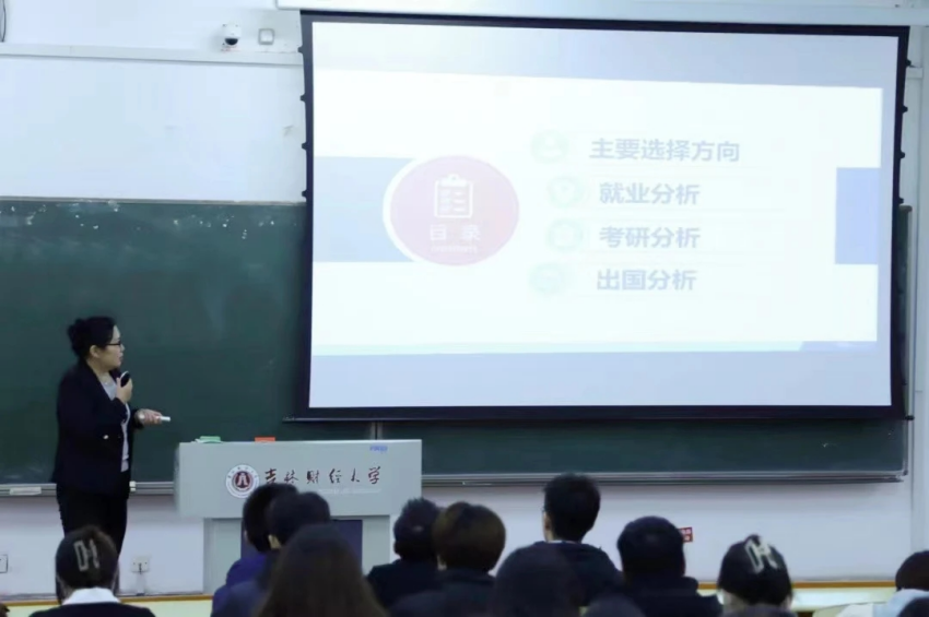 讲座主要围绕毕业生未来发展的三个主要选择方向,即直接就业、攻读研究生、出国留学。她告诉同学们,无论选择哪个方向,都不用压力太大,可以结合自身适当调整目标。