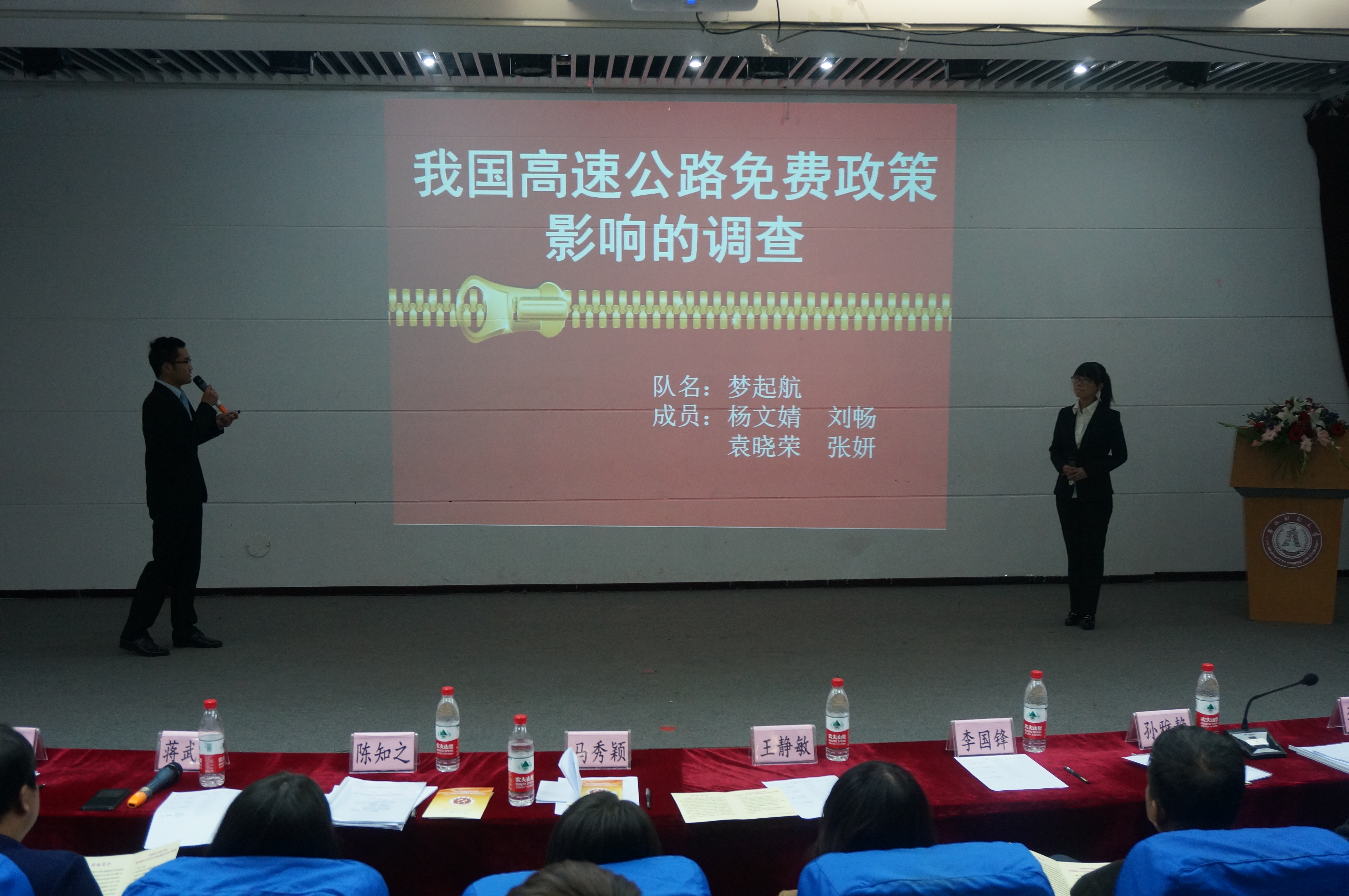 比赛在马秀颖老师精彩的致辞后正式拉开了帷幕。该次比赛共有四组参赛选手,参赛题目分别是《各地区土地储备的经济效益综合评价》、《我国16家商业银行竞争力评价研究》、《技术创新投入与工业经济效益关系的探究》、《我国高速公路免费政策影响的调查报告》。比赛中,四组选手分别对自己的报告展开了详细的阐述。面对评委的问题,选手们也都沉着冷静,作出了严谨而有逻辑的回答。
