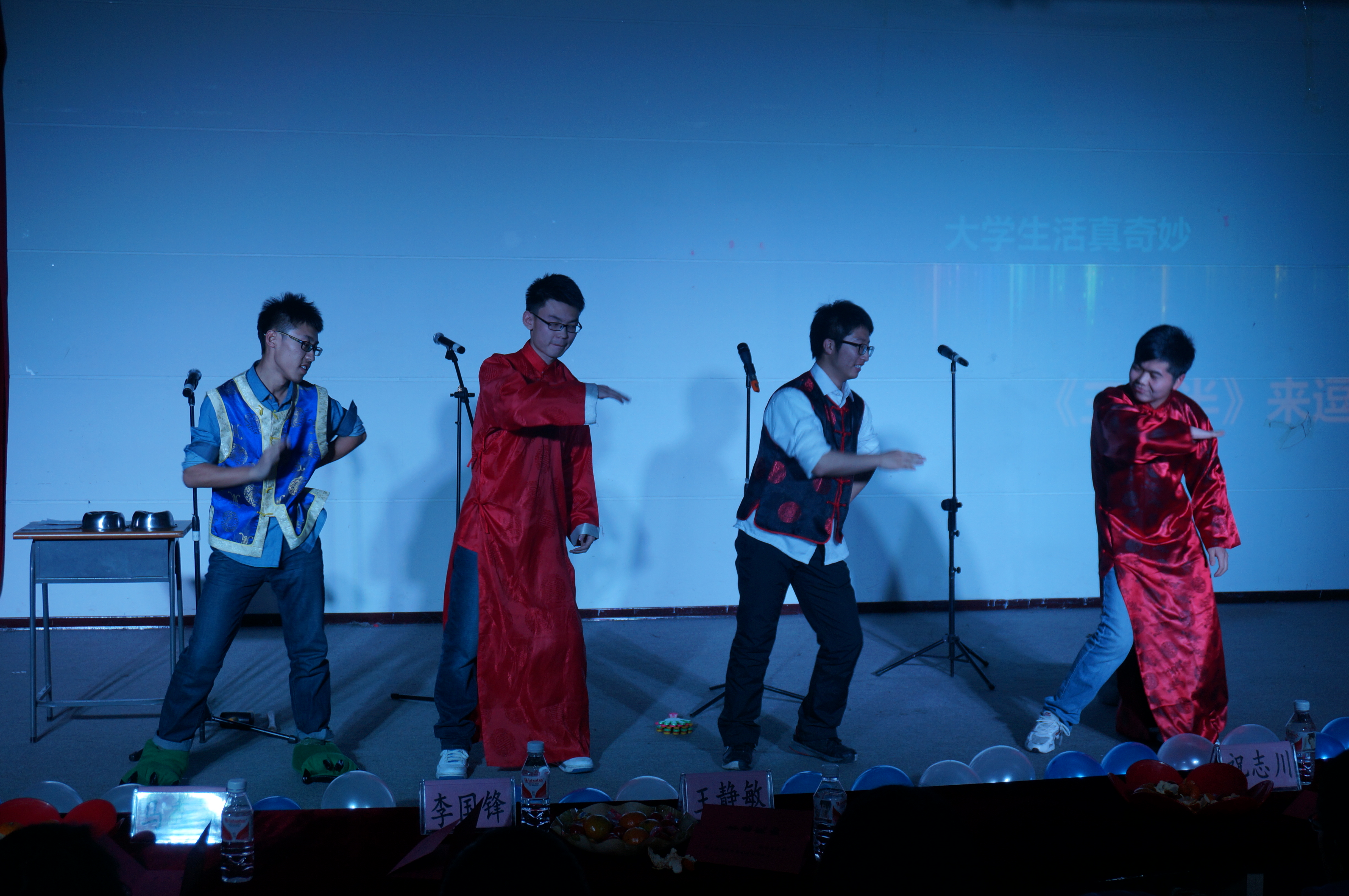 副院长马秀颖副教授为晚会致辞。接下来在集体舞《万万没想到》中男生女生们精彩的表演将整个晚会带入了一个小高潮。而新闻与传播学院幽默的相声表演《满腹经纶》更是引起场下不断的叫好声。动感十足的歌曲串烧,充满了校园气息,充分展现了大学生们的青春与活力。趣味十足的校园情景小品《男生寝室》也让人忍俊不禁。最后在海角视频