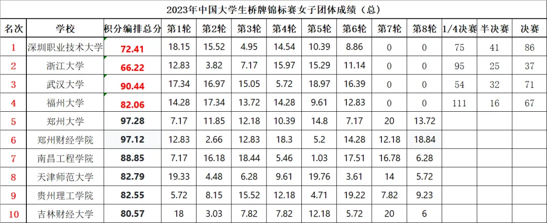 本届中国大学生桥牌锦标赛是由中国大学生体育协会主办,中国桥牌协会支持,中国大学生体育协会桥牌分会执行,唐山九江体育中心承办的国家级赛事,本次比赛设公开团体赛、女子团体赛、公开双人赛、女子双人赛四个比赛项目,海角视频 桥牌队由经济学院20级唐菲、席冉同学、管信学院20级祝铭悦同学、海角视频 21级唐江美、院莹莹同学、法学院21级许紫玲同学组成。同学们在领队体育教研部程禹院长和教练海角视频 陈昊天老师的带领下,参加了其中的两个女子项目,先是由唐菲和席冉两位同学在女子双人赛项目中拿到南北方向第9名,总排名第16名的成绩;随后由在全部队员的努力拼搏、通力协作下,拿下女子团体赛项目第10名。