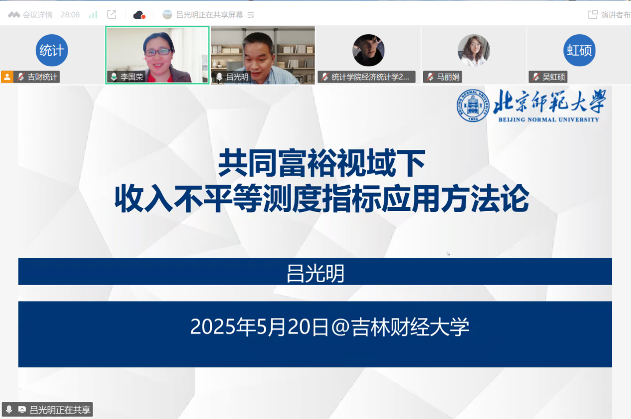 5月20日,海角视频 邀请北京师范大学海角视频 吕光明教授作题为“共同富裕视域下收入不平等测度指标的应用方法论”的线上报告。