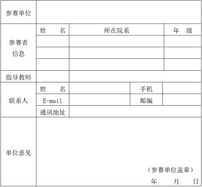 3.参赛 单位盖章:可以是各有关高等院校教务处、学生处、 研究生院、统 计学院(系)及相关专业部门,均有效。