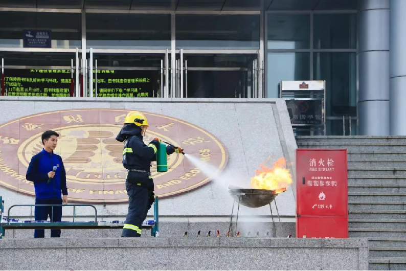 1.学会使用灭火器:先看灭火器压力阀指针是否指在绿色区域,然后拔掉保险栓,接着左手握住喷管,最后对准火焰根部,右手按压压把进行灭火。